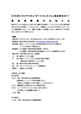 安全にトライアスロン競技を楽しんでいただくために、神奈川県トライアスロン連合では各種の講習会を実施しています。NPO法人湘南ベルマーレスポーツクラブと共催で開催する「KnTUオー…