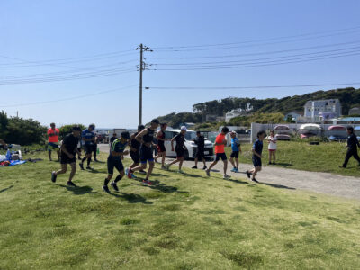 運動広場とYMCA内のコースを使ってランのドリル練習を行いました。ドリル練習を行うことで効率的に楽にランを走れるようになります。
